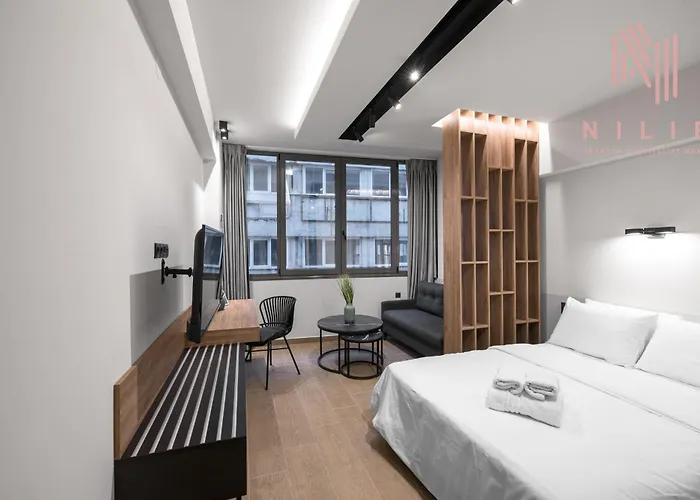 Vellow Door, Nilie Hospitality Mgmt ferielejlighed tilbyder indkvartering i centrum af Thessaloníki. Overnatningsstedet har privat badeværelse med et badekar og en bruser.